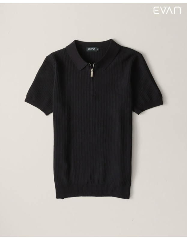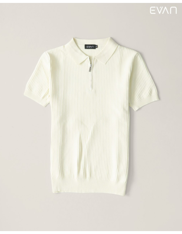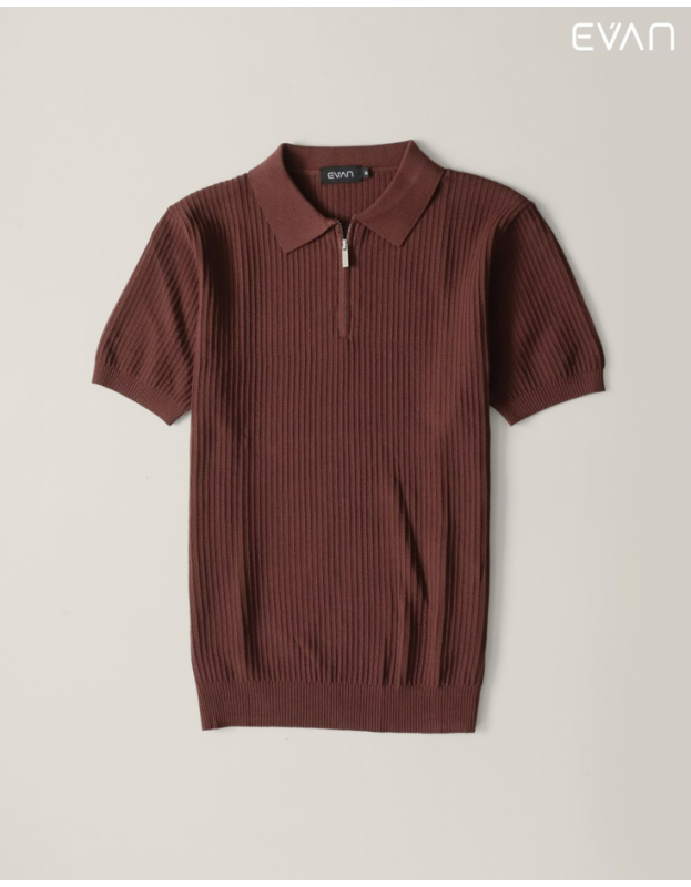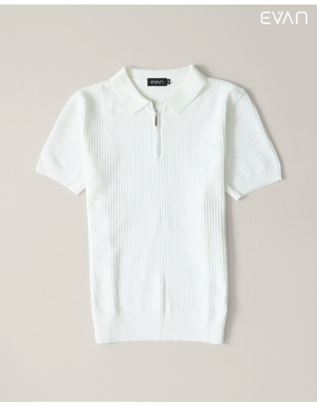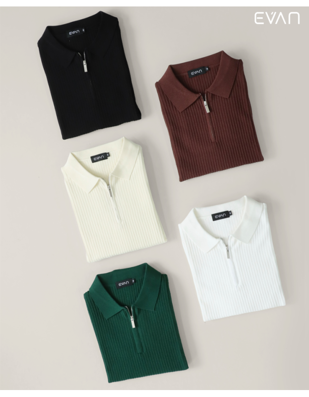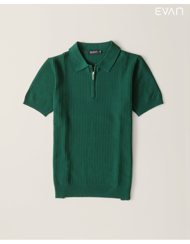 Discover a fresh take on the classic polo with the EVAN Ribbed Zip Polo. This short-sleeve shirt is crafted from a soft, stretchable knit with a striking vertical ribbed texture that adds a modern and sophisticated dimension. It features a clean collar and a stylish half-zip front closure, offering a look that's both polished and comfortable. Available in a versatile palette of colors, including a rich green, classic black, warm brown, and crisp white, this polo is the perfect piece to effortlessly elevate your everyday style.