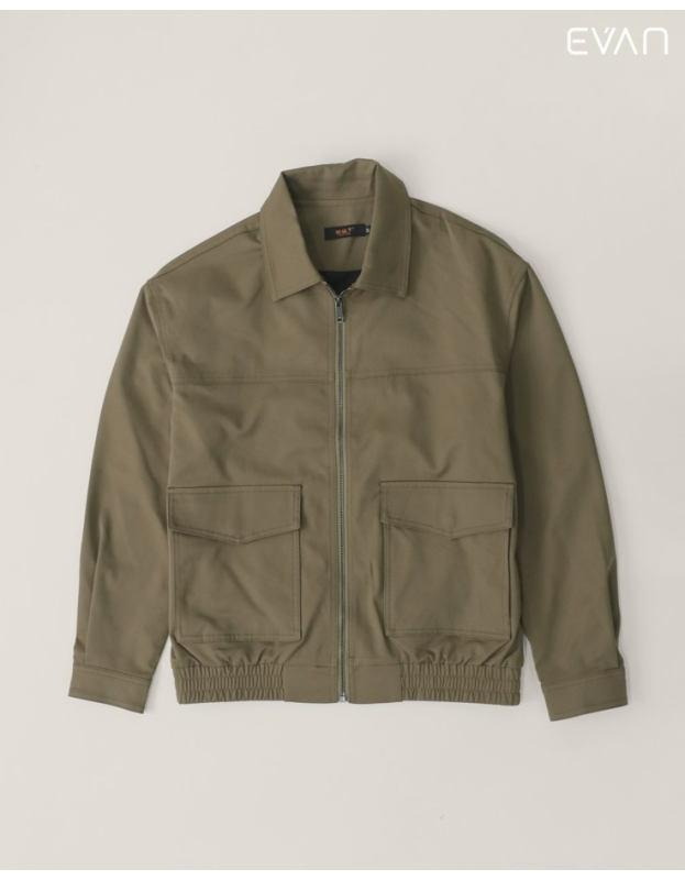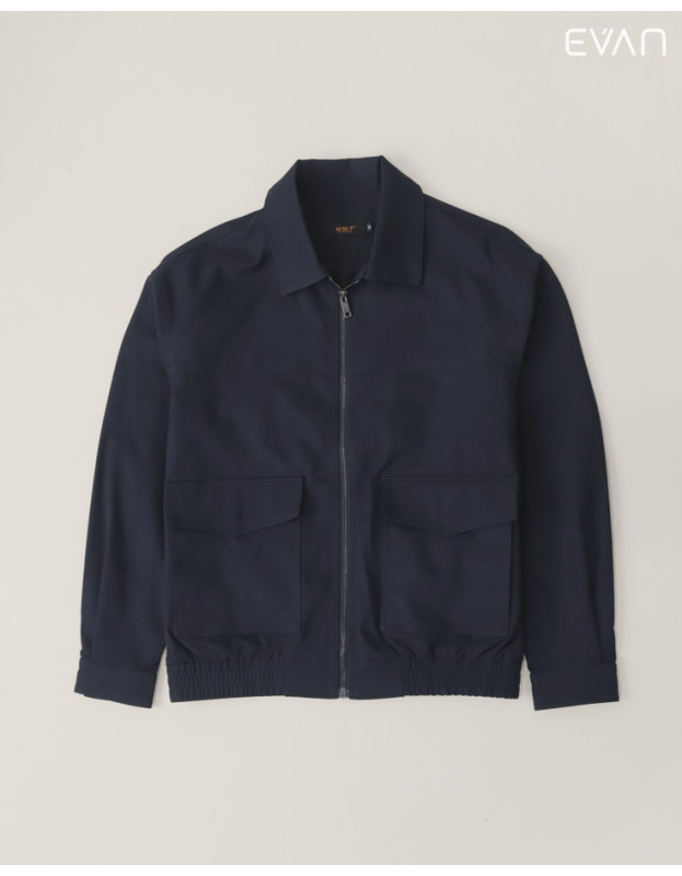 Elevate your casual outerwear with the EVAN Utility Jacket, a versatile piece inspired by classic workwear. This jacket features a clean full-zip front, a sharp pointed collar, and a comfortable elasticized hem for a modern fit. Two prominent button-flap chest pockets add functional style. Available in essential colors, including a rugged olive green and a sophisticated navy, this durable yet lightweight jacket is the perfect piece to layer over a tee for an effortlessly cool and practical look.