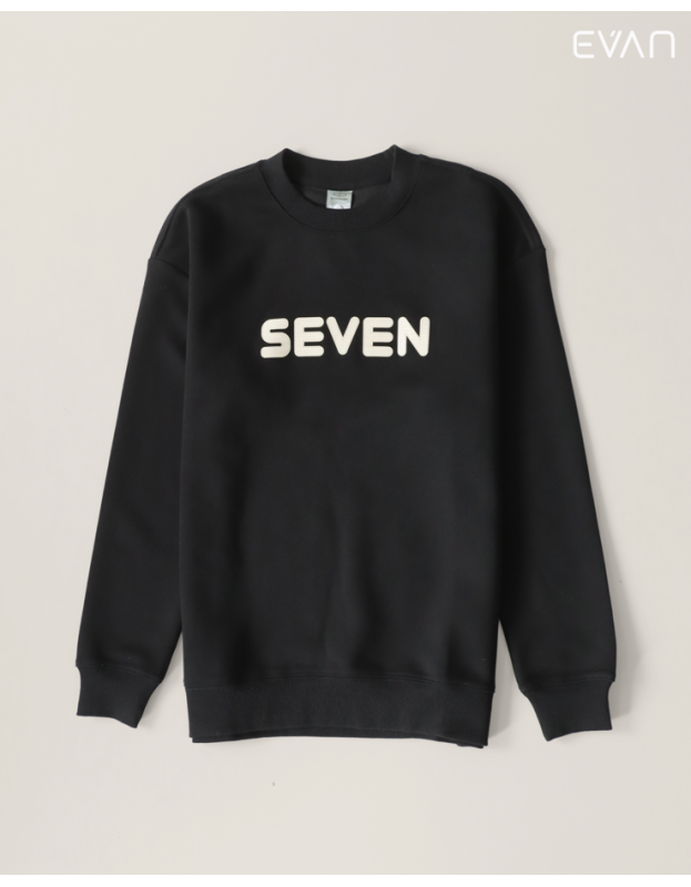 Stay comfortable and make a statement with the EVAN Graphic Crewneck Sweatshirt. This essential piece for cooler weather features a cozy, relaxed fit with dropped shoulders for an effortlessly cool silhouette. The standout feature is the bold, contrast "SEVEN" graphic centered on the chest. Crafted from a soft, comfortable fabric, this sweatshirt is perfect for everyday wear. Available in versatile colors, including classic black, creamy off-white, and warm brown, it’s an easy way to add a stylish graphic to your casual layering.