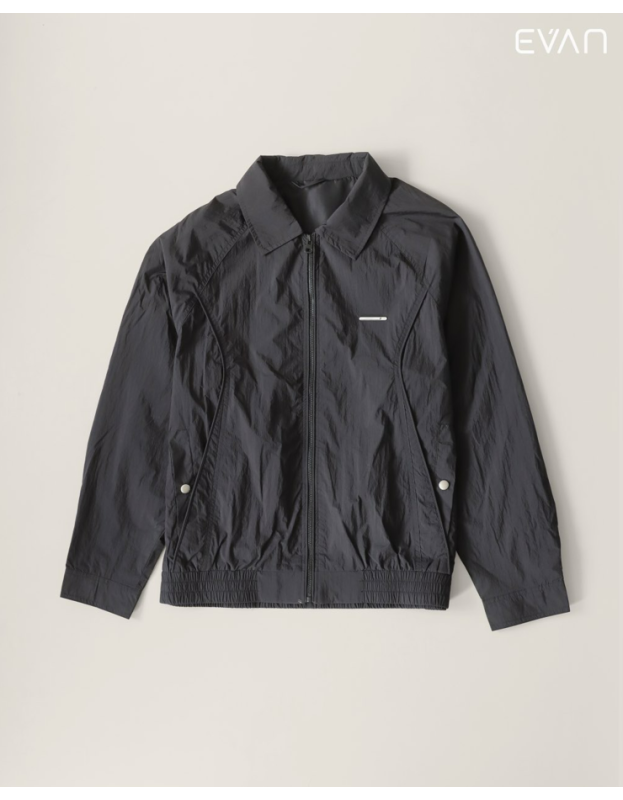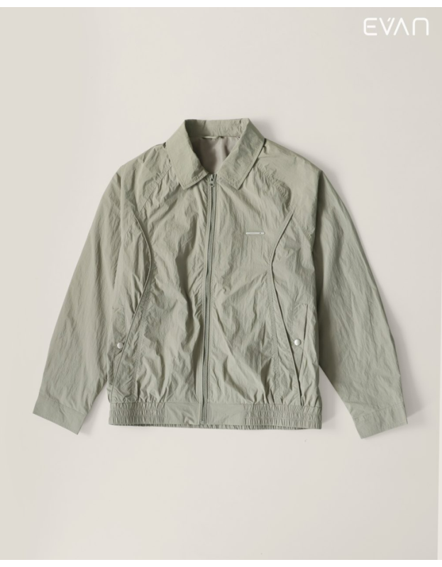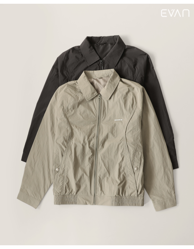 Discover the perfect lightweight layer with the Collared Jacket. This modern piece offers a clean, versatile aesthetic, featuring a classic fold-down collar, a full-zip front, and a comfortable elasticized hem. The fabric has a subtle crinkled texture and the stitching details add a touch of functional utility styling. Ideal for transitional weather, this jacket is available in essential colors, including a versatile light sage green and a timeless black, making it an effortlessly cool and practical addition to your casual wardrobe.