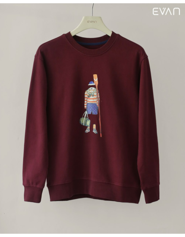 Add a touch of playful charm to your casual rotation with the EVAN Graphic Crewneck Sweatshirt. This cozy, long-sleeve top features a comfortable, relaxed fit and a soft, textured knit fabric. The centerpiece is a unique, whimsical graphic print—a stylized character ready for an adventure. Perfect for effortless layering, this sweatshirt is available in a versatile palette of colors, including a muted sage green, deep burgundy, and cool gray. It’s an essential piece for staying comfortable while showing off a fun, unique style.