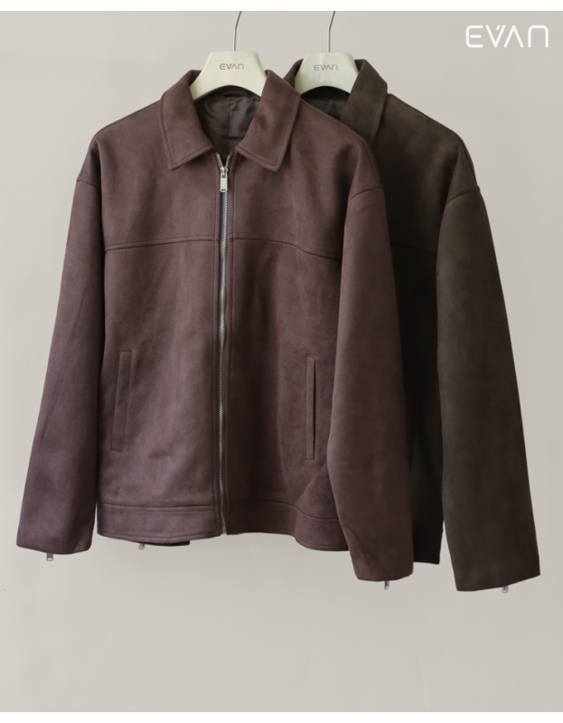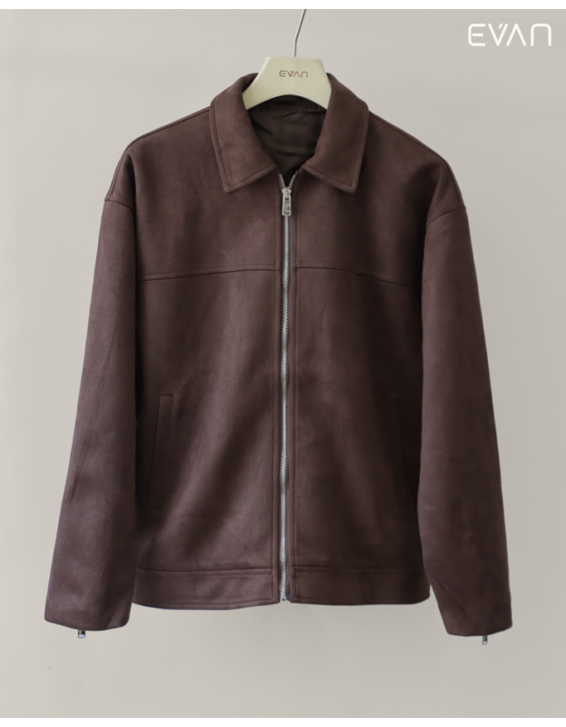 Elevate your outerwear with the EVAN Suede Harrington Jacket, a classic silhouette rendered in a refined, soft texture. This jacket is crafted from a smooth suede-like fabric and features a clean full-zip front and a sharp fold-down collar. The design is kept minimal with practical side slash pockets and a comfortable, relaxed fit, allowing the luxurious feel and rich color to take center stage. Available in two versatile, earthy shades of brown, this jacket is the perfect piece for adding a sophisticated, textural layer to your smart-casual wardrobe.