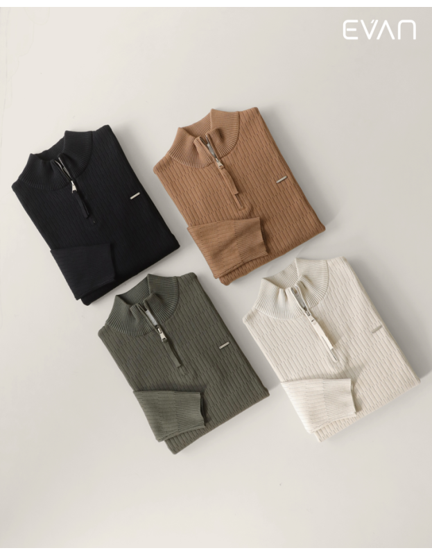 Elevate your cold-weather essentials with the Textured Quarter-Zip Sweater. This handsome long-sleeve knit features a contemporary mock neck and a functional half-zip closure, perfect for easy temperature regulation. Crafted from a soft knit with a striking, all-over textured pattern, this sweater offers visual depth and modern sophistication. Available in a versatile range of colors—including classic black, warm brown, military green, and off-white—it's the ideal piece for adding a refined layer to your smart-casual wardrobe.