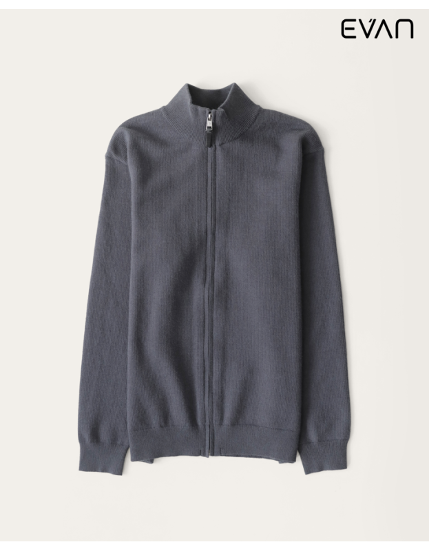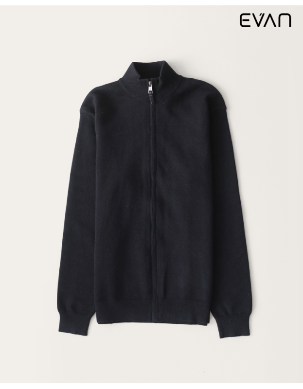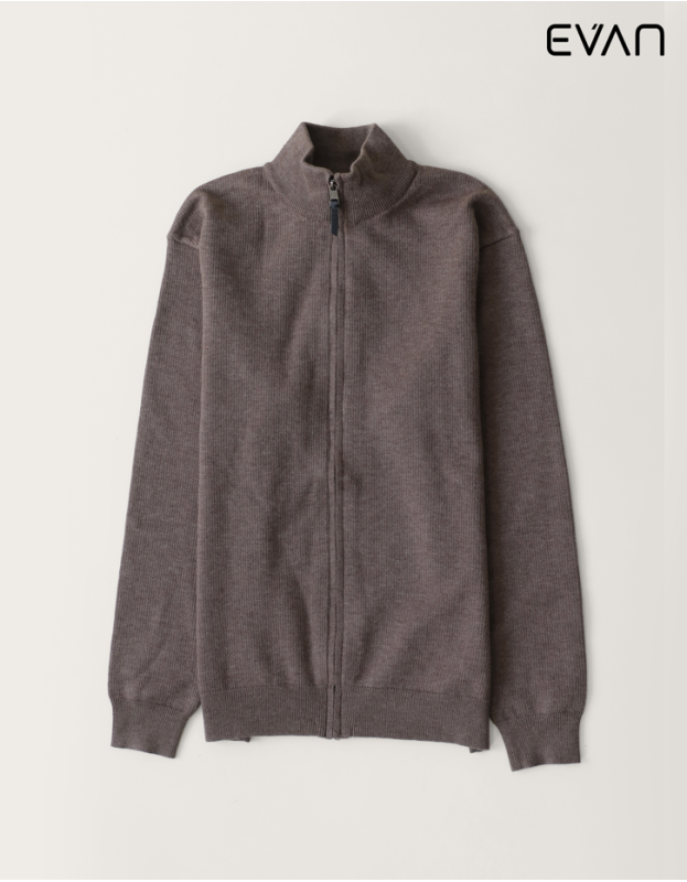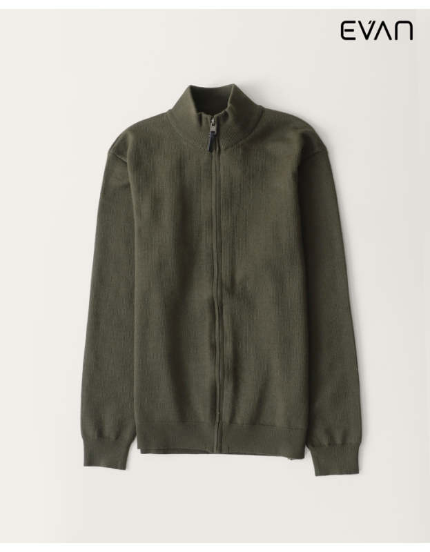 The Ribbed Full-Zip Sweater is the ultimate sophisticated layer for cool weather. This cozy, long-sleeve knit features a classic mock neck and a functional full-zip closure, making it easy to wear over shirts or tees. Crafted from a soft, fine knit with a subtle vertical ribbed texture, it offers a clean, refined fit. Available in essential, rich tones—classic black, versatile olive green, deep blue-gray, and warm brown—this sweater functions as a comfortable, sharp jacket alternative for any smart-casual look.