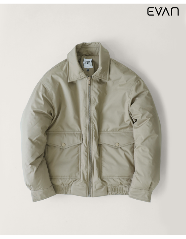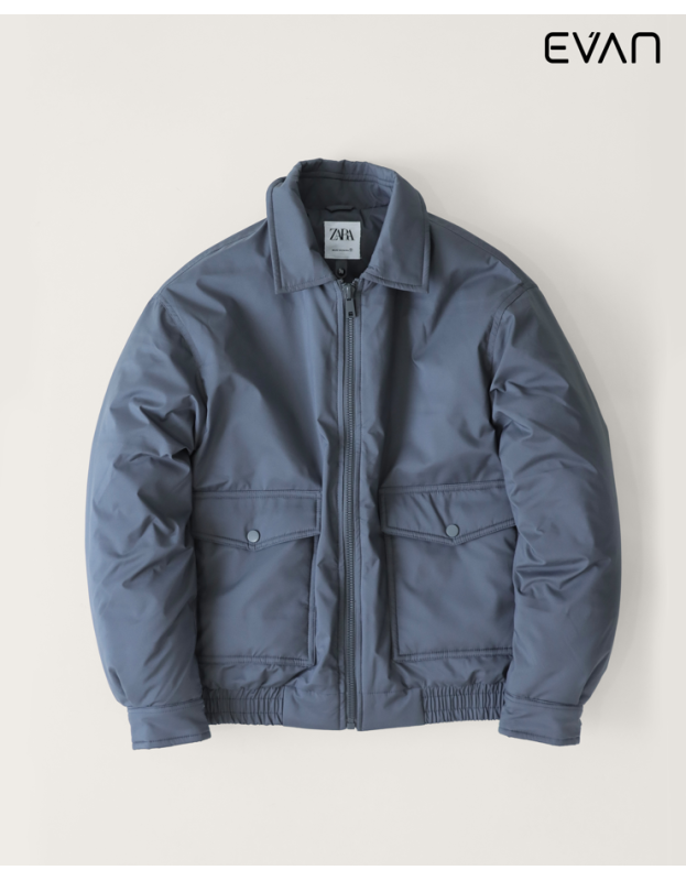 Stay warm in sharp style with the Padded Collared Jacket. This versatile outerwear piece features a clean, classic fold-down collar and a smooth full-zip front closure. Designed for practicality, it includes two large, functional snap-button flap pockets on the chest. With a comfortable, slightly padded structure and an elasticized hem, this jacket provides warmth without bulk. Available in essential masculine tones—a cool gray-blue, versatile beige/khaki, and classic black—it's the perfect modern layer for transitional and cool weather.