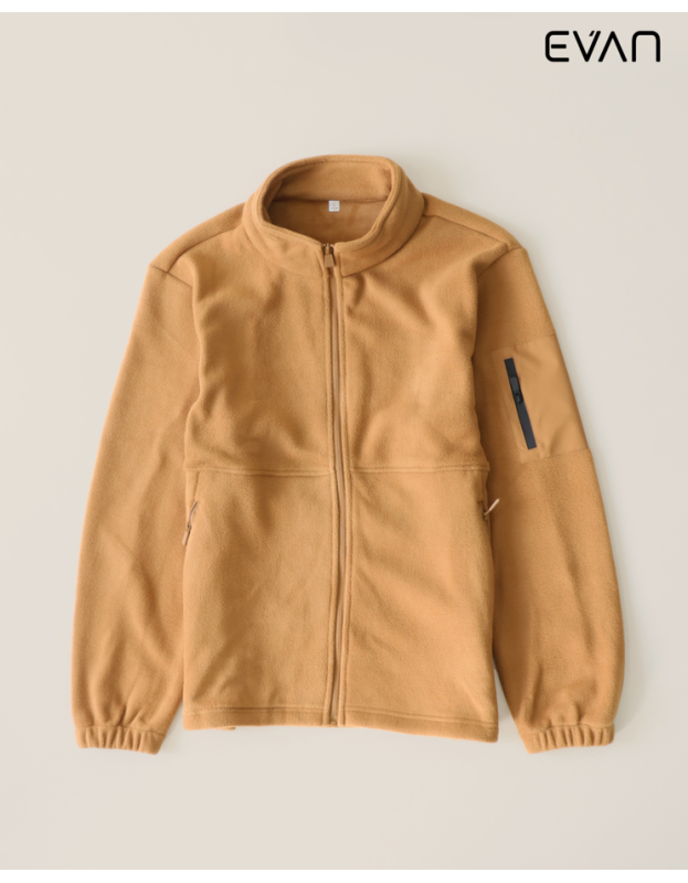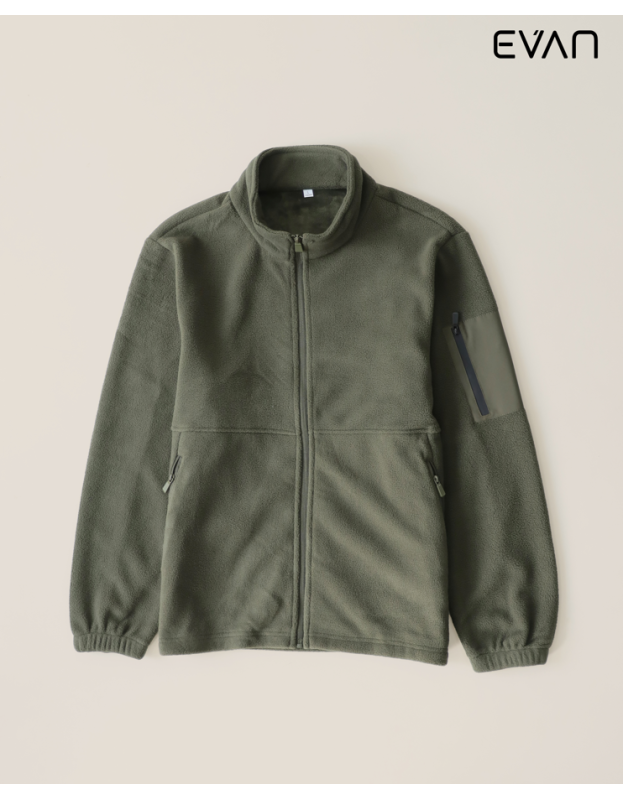 Stay exceptionally warm and comfortable with the Full-Zip Fleece Jacket. This cozy outerwear staple is crafted from a soft, substantial fleece fabric that provides excellent insulation without bulk. It features a high mock neck, a clean full-zip front, and functional zipped side pockets. A practical zipped utility pocket on the sleeve adds a modern, tactical detail. Available in rich, versatile colors—including olive green, warm mustard/camel, and cool blue—this jacket is the ideal layer for hiking, outdoor activities, or simply everyday cool-weather comfort.