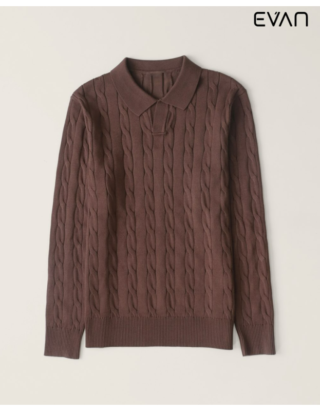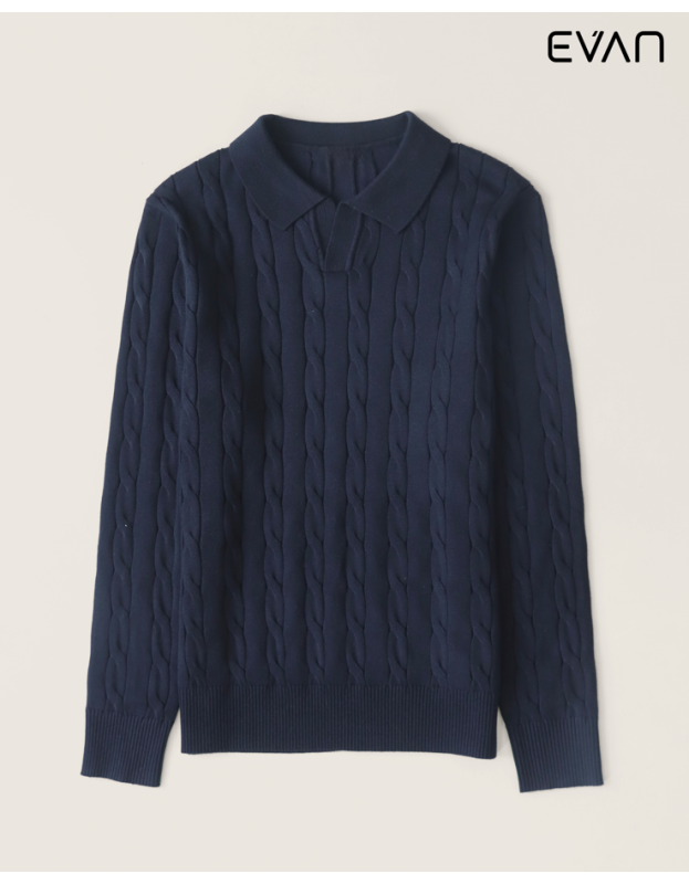 Refine your smart-casual aesthetic with the Men’s Cable-Knit Polo Sweater, a perfect marriage of classic heritage texture and modern tailored style. This piece features a sophisticated all-over cable-stitch design that adds rich visual depth and a premium feel to your winter wardrobe. Designed with a traditional polo collar and a clean, buttonless placket, it offers a more structured and polished alternative to the standard crewneck sweater. The precision-ribbed cuffs and hem ensure a comfortable, stay-put fit while maintaining a sleek silhouette that layers easily under blazers or outerwear. Crafted from a high-quality knit that provides natural warmth and a soft touch against the skin, this sweater is available in a versatile palette of Midnight Navy, Cream Ivory, and Rich Cocoa Brown. Whether you're heading to a business-casual meeting or a weekend brunch, the cable polo is a timeless staple for the modern man.