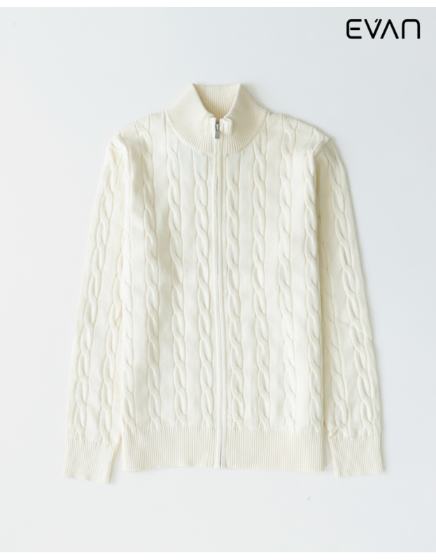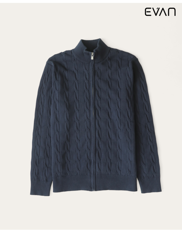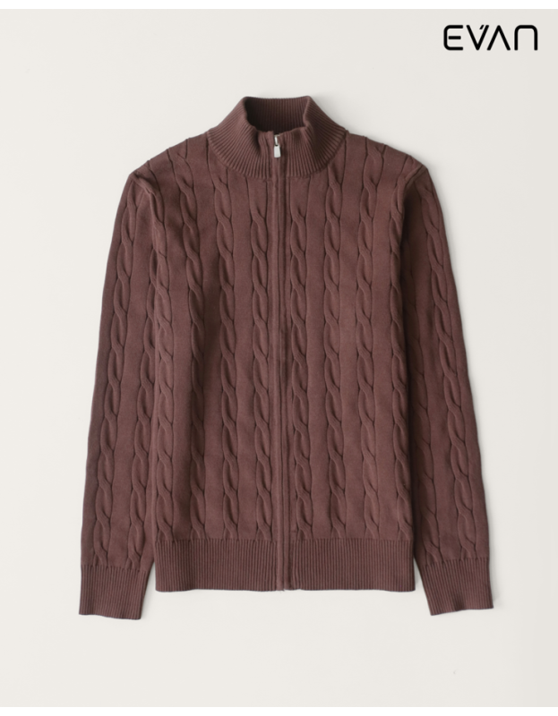 Elevate your seasonal wardrobe with the Men’s Cable-Knit Zip Sweater, a sophisticated layering essential that seamlessly blends traditional texture with a modern, streamlined fit. This sweater features an intricate, all-over cable-stitch pattern that provides a rich, tactile aesthetic, making it an ideal choice for both professional and casual settings. Engineered for versatile comfort, it is designed with a structured rib-knit mock neck and a durable full-length metallic zipper for effortless temperature control. The precision-ribbed cuffs and hem ensure the sweater maintains its shape while offering a secure, stay-put fit throughout the day. Crafted from a premium, soft-touch knit fabric that delivers exceptional warmth without the bulk, this piece is available in a curated palette of refined tones, including Midnight Navy, Cream Ivory, and Rich Cocoa Brown. Whether worn over a crisp button-down for the office or paired with denim for a relaxed weekend, the EVAN cable-knit sweater is a timeless staple for the discerning modern man.